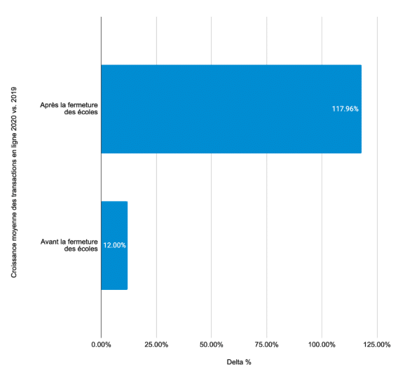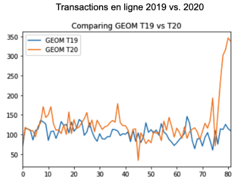 Nous voulions observer si, au moment de l’annonce de la fermeture des écoles au Québec, des changements anormaux dans les activités d’achat en ligne se manifesteraient. Si oui, est-ce que ces changements s’avèreraient mathématiquement significatifs en comparaison à l’année précédente pour la même période?