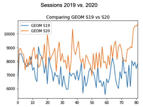 Par conséquent, les réponses au sujet de l’impact du COVID-19 sur le e-commerce québécois étant manquantes et les résultats de différentes sources (principalement américaines) étant divergents, l’équipe analytique et science des données d’Adviso s’est lancé une mission: analyser le comportement e-commerce des consommateurs québécois grâce aux données de nos propres clients dans Google Analytics. Nous avons constitué un échantillon regroupant plus d’une vingtaine de marques québécoises. La question scientifique soulevée par l’analyse était la suivante: La COVID-19 a-t-elle fait exploser le e-commerce au Québec? Si oui, quel est l’ordre de grandeur de l’impact?
