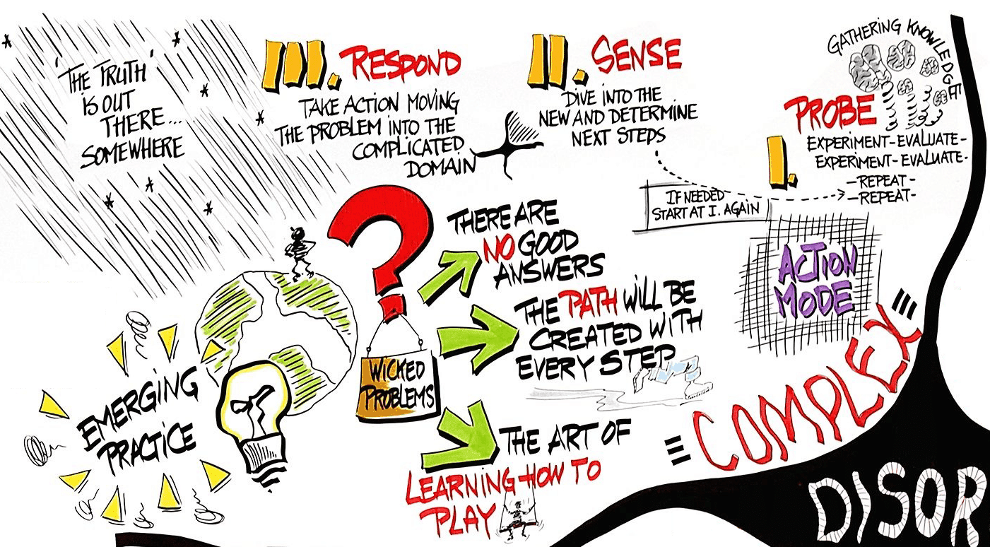 Un système complexe requiert une part d’instinct et d’essai-erreur, car il n’existe aucun expert pour supporter l’analyse. On doit écouter, sonder et expérimenter constamment afin de voir émerger les règles du système; on doit le reverse-engineer afin de le comprendre. On parle ici de pratiques émergentes. Je crois qu’avec la pandémie mondiale actuelle, on se retrouve ici. Parce que personne ne sait exactement ce qui adviendra de l’économie, de certaines industries ou encore du monde du travail.
