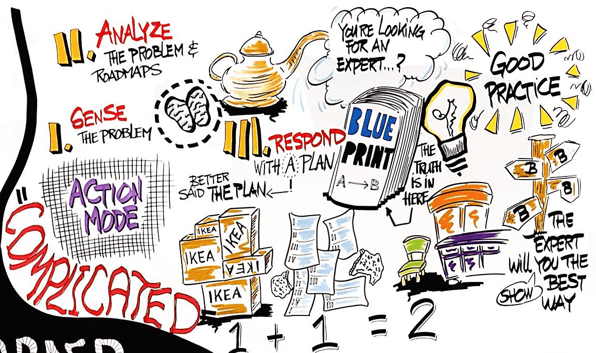 Afin de pouvoir passer du système complexe au système compliqué, Cynefin nous enseigne à être actifs. Écouter, sonder, essayer, apprendre, noter, se tromper, recommencer, raffiner. Tous ces verbes impliquent une proactivité qui permettra de faire émerger les pratiques qui, ensuite, deviendront de bonnes pratiques. Cette proactivité permettra également d’en arriver à un système un peu plus simple à gérer.