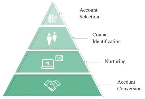 Chaque campagne d’acquisition se concentre sur un compte cible, à forte valeur ajoutée, identifié en amont par les équipes commerciales. Ce compte prospect, traité comme un “marché” à part entière, va alors être ciblé de façon privilégiée et conjointe par les équipes marketing et commerciales, suivant un plan de communication unique. C’est, en quelque sorte, une approche inversée à l’entonnoir de conversion.