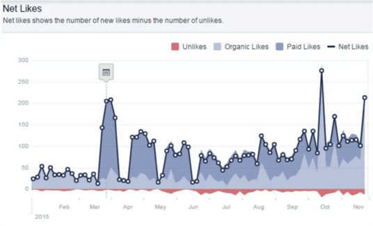 Le graphique ci-dessous représente les Likes d’une page Facebook qui a commencé sa campagne d’acquisition payantes en mars et une stratégie organique rigoureuse à partir du mois d’avril. Regardez comment, à budget constant, le ratio Organic Likes / Paid Likes va progressivement s’inverser. À partir d’octobre,les ⅔ des nouveaux likes sur cette page sont devenus gratuits et 1/3 sont désormais payants. L’exact inverse de la situation observée en avril. Le problème, c’est qu’il aura fallu attendre 5 mois pour obtenir ce résultat: une éternité quand on attend des médias sociaux des gains instantanés.