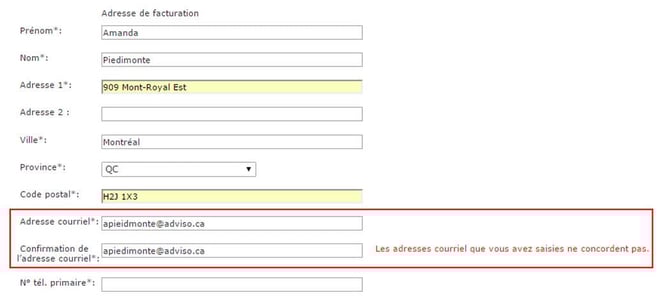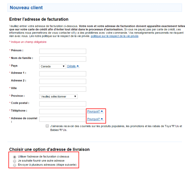 Ne demandez pas la même chose à deux reprises et préremplissez les champs avec les informations déjà partagées. Par exemple, l’adresse de livraison étant souvent la même que l’adresse de facturation, offrez l’option de remplir ces champs automatiquement pour éviter de dupliquer la saisie. Assurez-vous que chacun des champs à remplir a une utilité réelle puisque les utilisateurs n’aiment généralement pas fournir des informations personnelles inutilement. Si vous demandez le numéro de téléphone, expliquez la raison ou l’utilisation que vous en ferez.