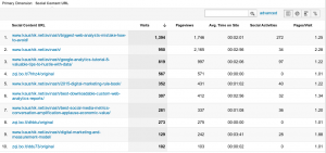 Le rapport de pages vous dira quels contenus reçoivent le plus de trafic en provenance des médias sociaux de même que les pages qui génèrent le plus d’interactions sociales par l’intermédiaire des puces de partage installées sur votre site (Facebook, Twitter, Google+, etc).