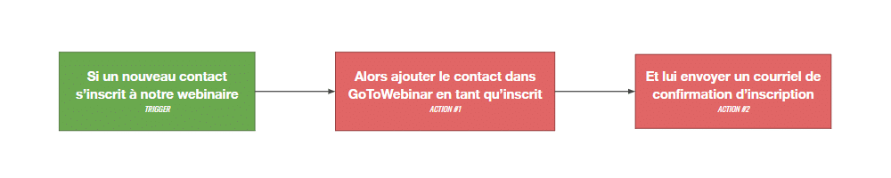 - Requis : capter l’inscription au webinaire (via un formulaire ou une intégration) et disposer d’une intégration avec GoToWebinar.