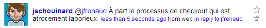 Petite parenthèse : Pour ceux ou celles qui ne connaissent pas Twitter, je vous conseille de visionner l’excellente vidéo de Common Craft qui explique son fonctionnement in plain english. Il y a aussi un article de l’illustre collègue JF Renaud qui relate en quelques points ce qu’est Twitter.