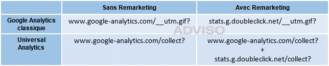 Que ce soit le code Google Analytics classique ou Universal Analytics, le domaine de l’URL est stats.g.doubleclick.net, voir les exemples ci-dessous.