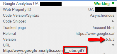 Selon l’exemple suivant, nous savons qu’il s’agit de la version 5.5.3 du code Google Analytics classique qui est utilisée.