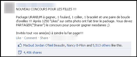 Mauvaise pratique: Demander de partager ou d’aimer une photo pour participer
