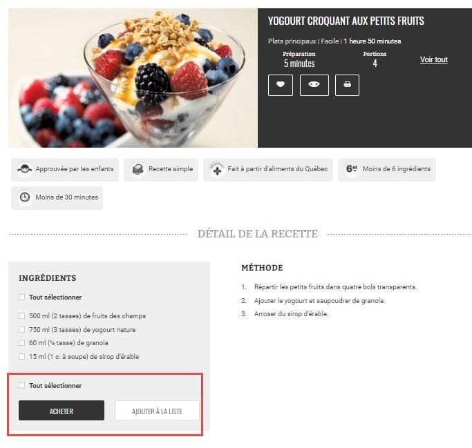 Recette IGA comprenant une option d’achat
