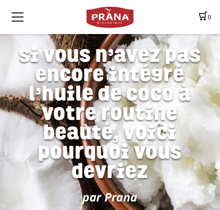 Un article de Prana qui aborde les propriétés beauté de l’huile de coco
