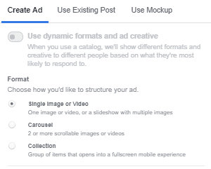 Rendez-vous dans compte publicitaire, au niveau « Annonce », puis sélectionnez l’option « Use Mockup » afin d’importer les publicités en question depuis le Creative Hub. Apportez-leur des modifications au besoin.