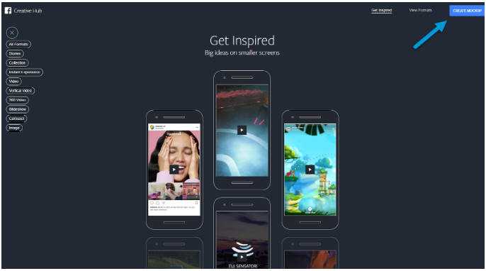 Une fois dans le Creative Hub de votre compte publicitaire, cliquez sur Create Mockup