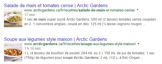 Enfin, Adviso a mené, en collaboration avec l’agence web Reptiletech, la refonte complète du moteur de recherche des recettes sur le site arcticgardens.ca. Pour ce faire, Adviso a créé une plateforme de travail commune afin de faciliter la collaboration entre tous les intervenants. Ce projet a grandement amélioré la visibilité des recettes de 1er niveau du site sur les SERPs.