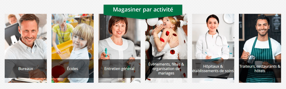 En B2B, il y a des tonnes de distributeurs établis en entretien ménager, fournitures de bureau, MRO (maintenance, repair, operations), services alimentaires, etc. C’est un marché dominé par des très gros, tels qu’Amazon, Staples Advantage (dont les revenus en ligne dépassent 10 milliards US), Sysco pour le marché des services alimentaires, Grainger, Uline, etc. Même Hamster (Lyreco, Novexco) ici au Canada a une place déjà bien établie.