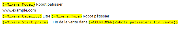 - Les fonctions IF : Elles permettent d’insérer un message spécifique lorsqu’une condition est remplie (et un texte par défaut quand ce n’est pas le cas). Plusieurs conditions sont disponibles.