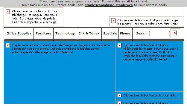 Illustration : une infolettre de Staples telle que vue via Outlook 2007 par défaut