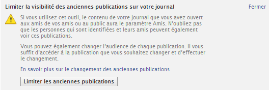 Cette fonctionnalité vous permet de changer toutes vos publications passées pour que seuls vos amis puissent voir le contenu. C’est une opération qui ne peut être changée par la suite, donc pensez-y bien.