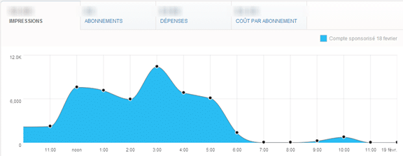 Dans le cas de la promotion de compte, ce type de publicité peut être considéré comme du long terme. Nous avons pu remarquer qu’il est difficile de dépenser beaucoup d’argent d’un coup étant donné le nombre d’utilisateurs au Québec. On parle donc d’une campagne qui, au travers des semaines, augmente tranquillement le nombre d’abonnés au compte.