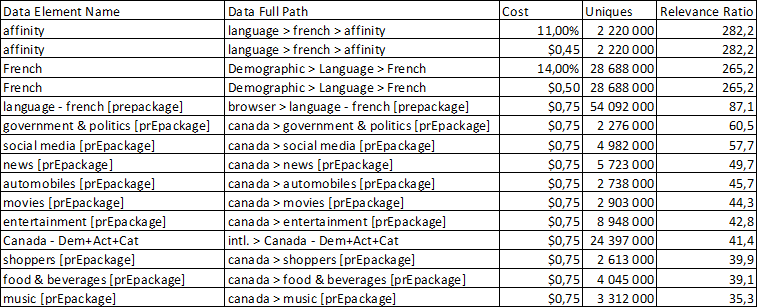 Dans l’industrie numérique, il y a des entreprises, dont Google et Facebook sont les meilleurs exemples, qui ont pour modèle d’affaires l’accummulation et la monétisation des données d’audience sur leurs plate-formes respectives. Ces entreprises deviennent alors des fournisseurs de data d’audience capables de vous vendre des segments de comportements très ciblés, comme par exemple un bassin d’utilisateurs “à la recherche d’un vol vers l’Italie à partir de Montréal.” Ces fournisseurs offrent leurs données en ventes sur les DMP (Data Management Platforms) dont nous parlerons dans le prochain billet. Ces données peuvent être juxtaposées à l’achat d’une impression sur les enchères publicitaires auxquelles vous accédez via un DSP. Pour ceux qui sont outragés par cette pratique, prenez note de ce dicton, “si vous n’avez pas payé pour un service, vous en êtes le produit.”