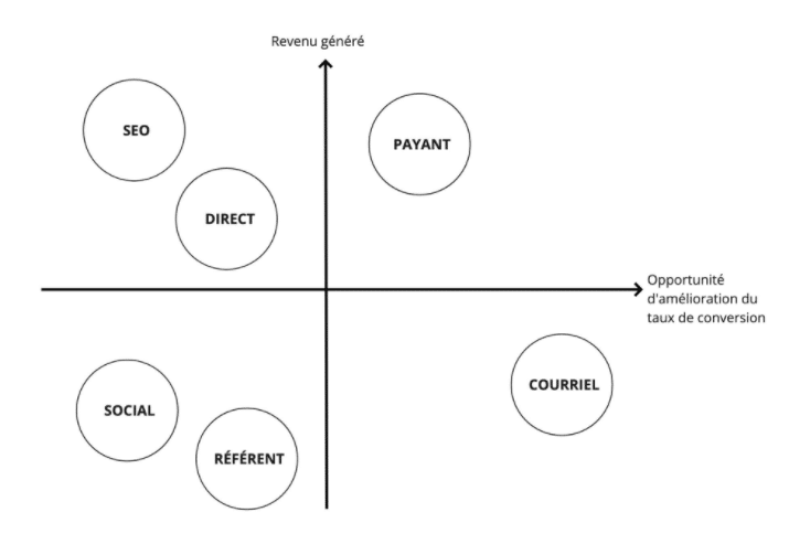 Un bon point de départ pourrait être de vérifier que vos objectifs de conversion sont paramétrés dans Google Analytics si vos transactions sont exclusivement en ligne, ou dans votre CRM si elles proviennent de diverses sources. De là, vous pourrez avoir une vue des canaux que vous mobilisez et des campagnes que vous menez, ainsi qu’une vue de leur impact sur le revenu engrangé.