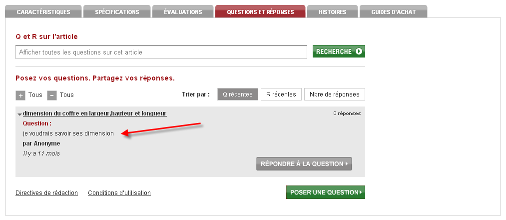 Je magasinais une petite boîte à outils en fin de semaine, et comme pour tout contenant, la taille d’une telle boîte est une caractéristique essentielle… mais souvent exclue de la fiche des produits. Il y a 11 mois, un visiteur s’est risqué à poser la question… toujours sans réponse :