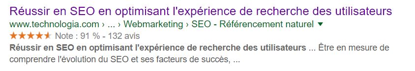 - augmentation des conversions : grâce par exemple aux avis présents dans un extrait qui vont apporter un crédit supplémentaire à votre produit/service.