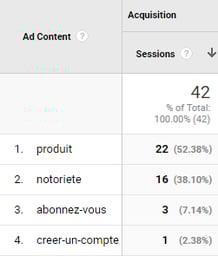 - Utm_content : Ad Content en anglais ou Contenu d’annonce en français