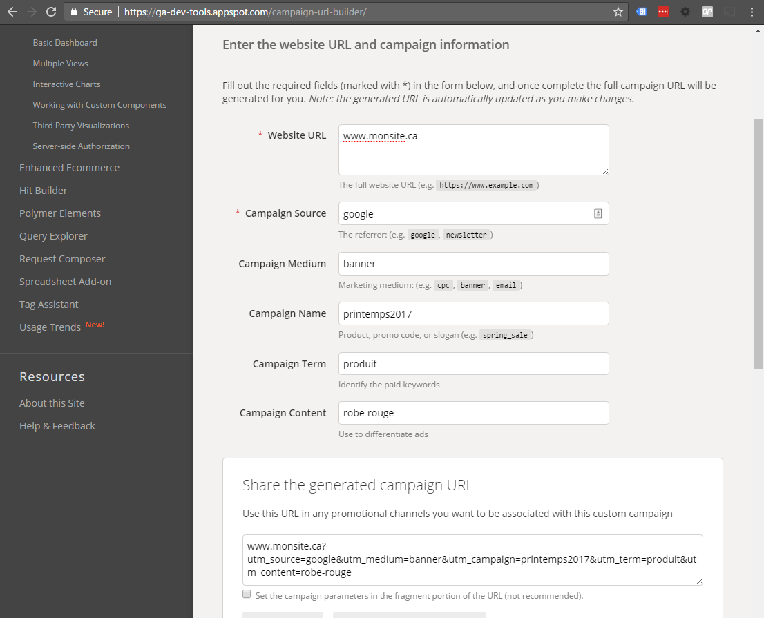 Vous pouvez utiliser l’Url Builder, l’outil officiel de Google pour les construire :