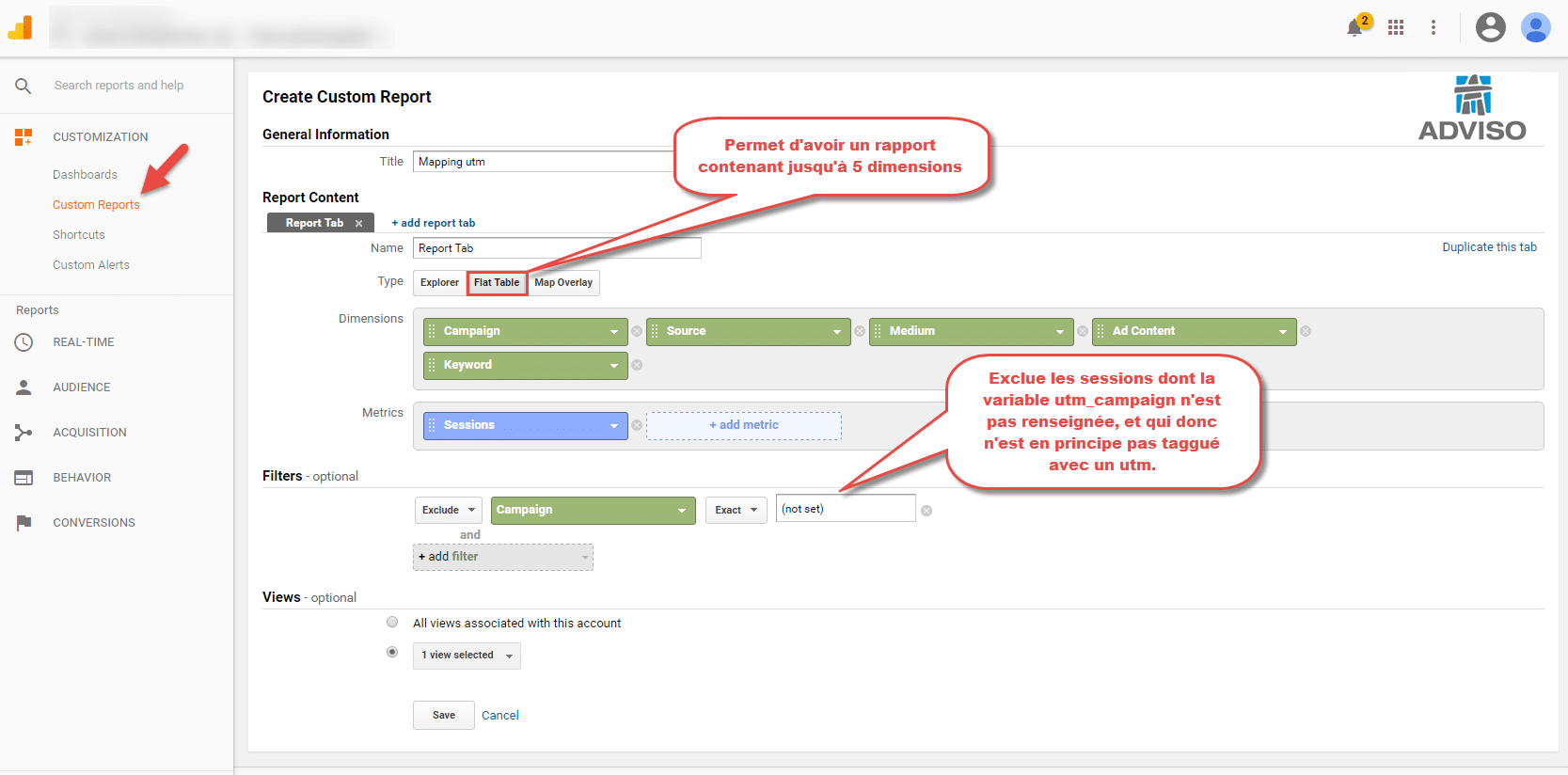 À l’aide de ce rapport personnalisé, vous pouvez extraire de Google Analytics le mapping complet de vos campagnes passées. Ce rapport extrait les variables susmentionnées, ce qui permet d’avoir un mapping clair de ce qui a été fait.