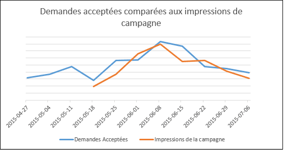 Les premières données analysées nous permirent d’établir la corrélation entre toutes les demandes reçues par le client et notre campagne.