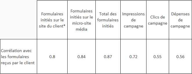 * : Il s’agit des demandes remplies sur le site corporatif, sans passer par un clic média. La campagne dirigeait les clics sur le micro-site.