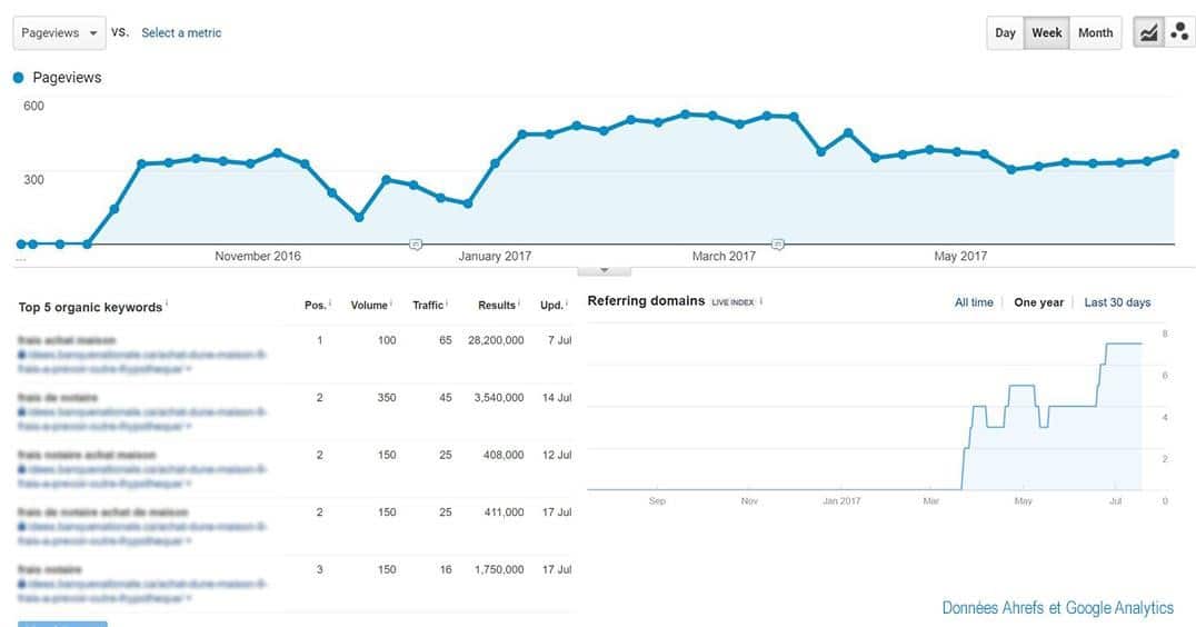 Ces trois tactiques couplées nous ont permis d’augmenter drastiquement le trafic organique du blogue d’un de nos clients.