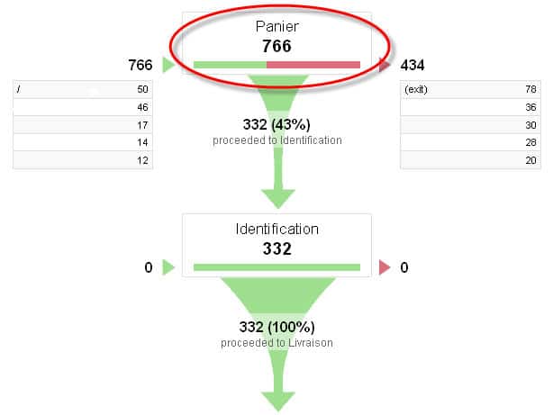 Dans l’entonnoir de conversion, la sélection des pages est relativement simple puisqu’il suffit de voir les étapes qui possèdent le plus haut taux d’abandon. Par la suite, il faudra se poser les bonnes questions et savoir se mettre à la place de l’utilisateur pour déceler les éléments à modifier et, éventuellement, ceux à créer.