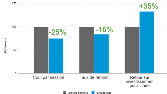 En plus d’atteindre l’objectif primaire de la campagne, le groupe test a généré un retour sur investissement publicitaire 35% supérieur à celui du groupe contrôle.