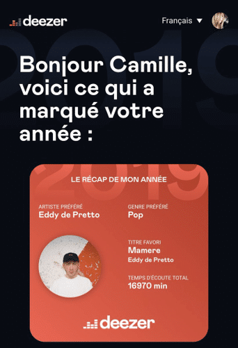 À titre d’exemple, Spotify et Deezer sont connus pour proposer un bilan personnalisé des principaux titres écoutés par leurs utilisateurs. Petit plus à la clé : on peut le partager avec son réseau – viralité maximale garantie!