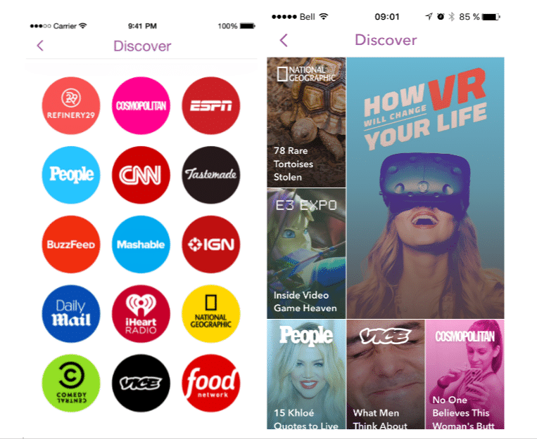 À peu près au même moment, une mise à jour de l’application faisait découvrir aux usagers une toute nouvelle interface de présentation des médias Discover, qui par des titres accrocheurs, tente sans aucun doute d’augmenter la visibilité des contenus et hameçonner les utilisateurs qui n’ont pas l’habitude d’y jeter un coup d’œil.