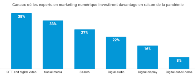 Selon une récente étude menée par AdExchanger auprès de spécialistes dans l’industrie du média numérique, 18 % des répondants réévaluaient leurs partenaires numériques spécifiquement en raison de la pandémie alors plus de la moitié (52 %) réévaluaient déjà leur stratégie et disent maintenant que l’épidémie a accéléré leur démarche de transformation numérique.