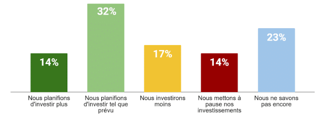 Malgré une chute des investissements projetée pour 2020 de près de 20 milliards de dollars il est très encourageant de noter que la volonté de bâtir des actifs numériques durables ne désemplit pas auprès des experts sondés. Avec une croissance du poids du numérique dans la balance, près de la moitié maintiendront ou augmenteront leurs investissements en technologies MarTech, Ad Tech et de données (Source: 2020 Industry Outlook: How COVID-19 Reset Digital Marketing).