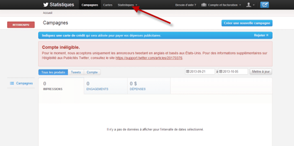 Vous arriverez sur un message d’erreur de Twitter concernant les publicités; ne vous en faites pas.