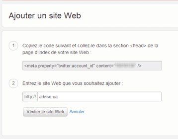 Le code HTML à ajouter à votre site s’affichera. L’ajouter à votre site prouvera que vous en êtes bien le gestionnaire.