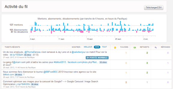 Vous pourrez donc voir le nombre de tweets pointant vers votre site, les interactions sur ceux-ci, en plus du nombre de clics sur les liens!