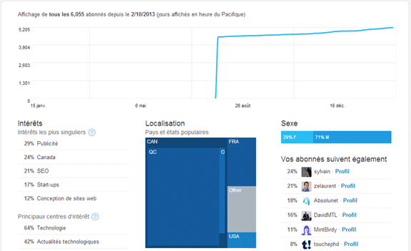 Maintenant, si l’on continue d’examiner l’outil d’analyse Twitter, on peut trouver des informations très intéressantes sur notre compte.