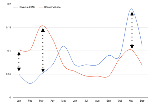 We’ve seen that when the curve of your marketing expenses perfectly matches the curve of consumer demand, the CPA will be at its very lowest point, and the cost, therefore, will be ideal.