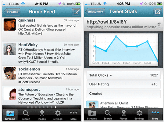 In order to do effective monitoring on Twitter, we strongly suggest the free Hootsuite application . Available on Android and iOS, we preferred it to the official Twitter application for its many features: