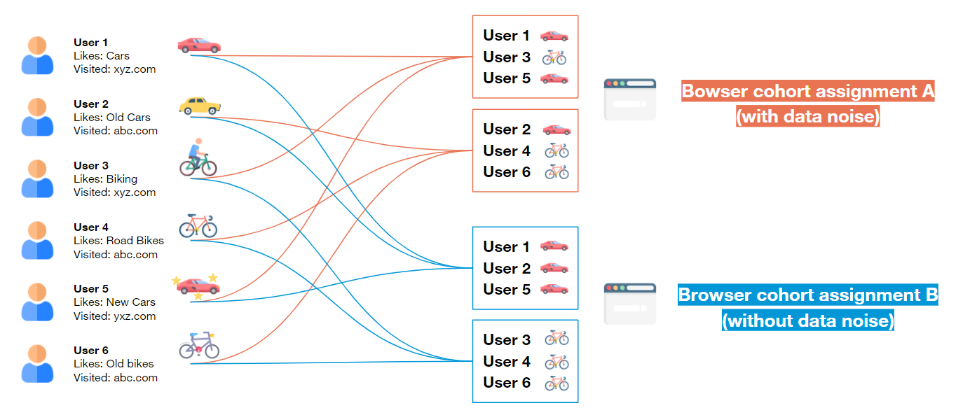The system would collect information relating to user interests by way of an algorithm that would analyze the content of a site visited by a user and then place the user amongst a cohort who share the same interest. The interests would be identified according to the sites or sections of sites that the users visited. The big difference between this proposal and the use of third-party cookies lies in the way in which the users are identified, that being within the context of a cohort and not individually. To prevent a scenario in which a person can be identified by the cohorts they belong to, certain of the user’s cohorts would be replaced by cohorts selected at random in order to add noise to the data and make the user unidentifiable (WICG, 2021).