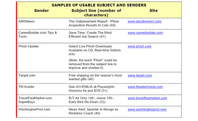 Examples of effective sender and subject names. (Source and ©: Email Newsletter Usability, Third Edition, Nielsen Norman Group)