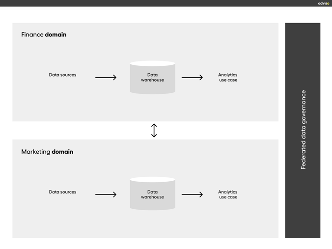 It happens that a data architecture based on fields of activity has been around for a few years now—it’s called data mesh. Data mesh was born out of the idea that it was hard for fields of expertise to quickly leverage their data due to long wait times caused by IT and BI (because of the centralization of data management within a single team).