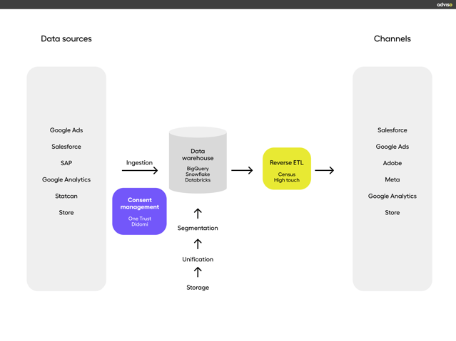 Data sources (collection): can be composed from many sources: Google Analytics, Adobe, Salesforce