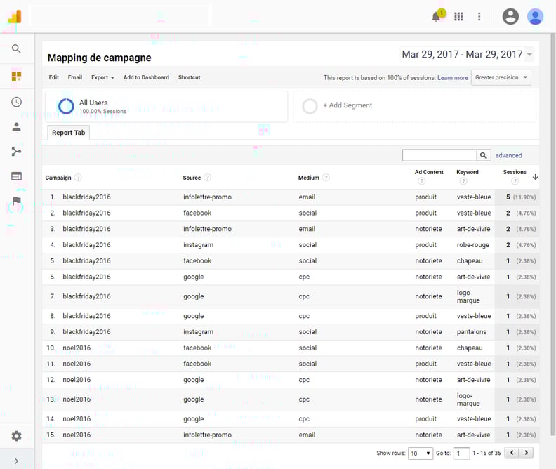 With help from this customized report, you can extract a complete map of your past campaigns from Google Analytics. This report extracts the above-mentioned variables, which allows you to get a clear map of what was done.